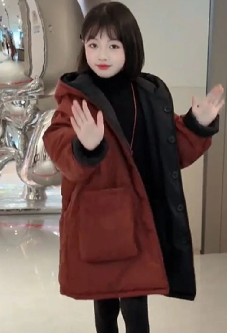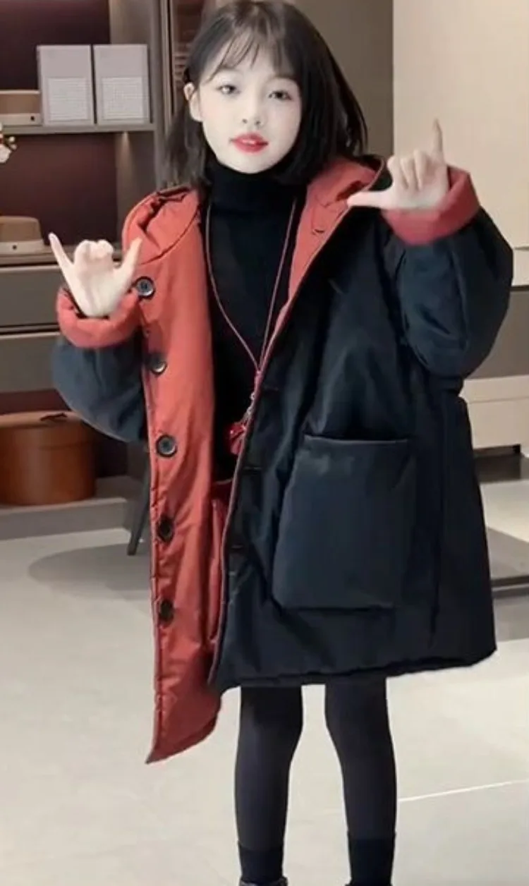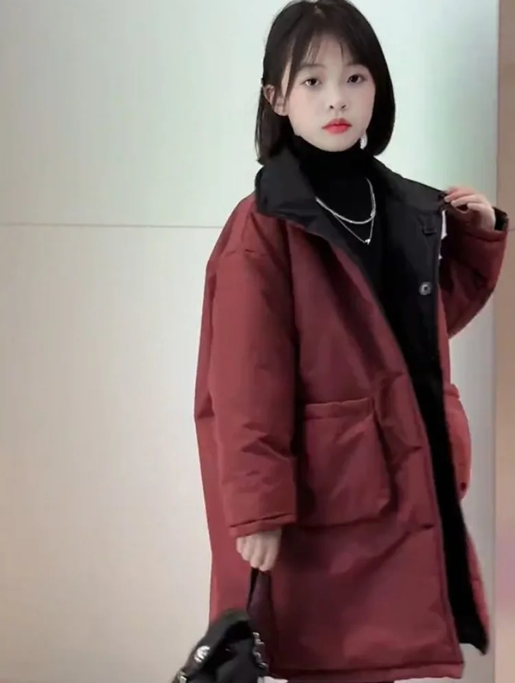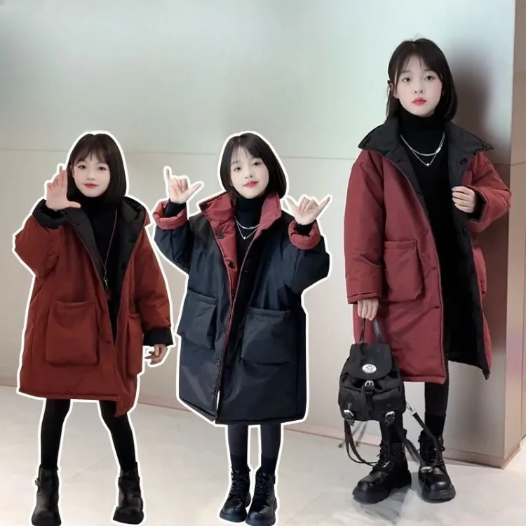 Two-in-One Reversible Winter Coat for Girls 2025 New Arrival Plus-Size Thermal Insulated Kids Jacket Thickened Middle-Length