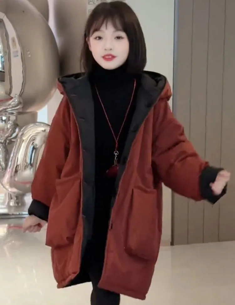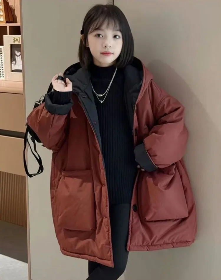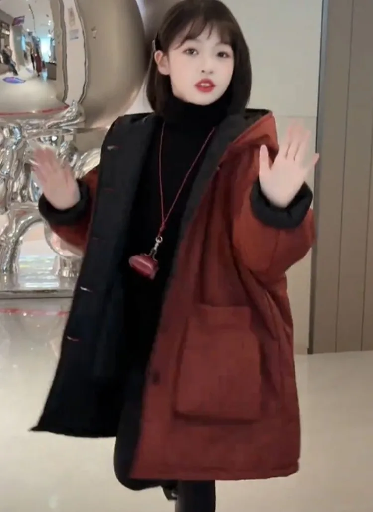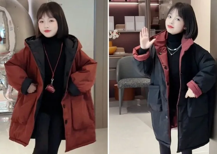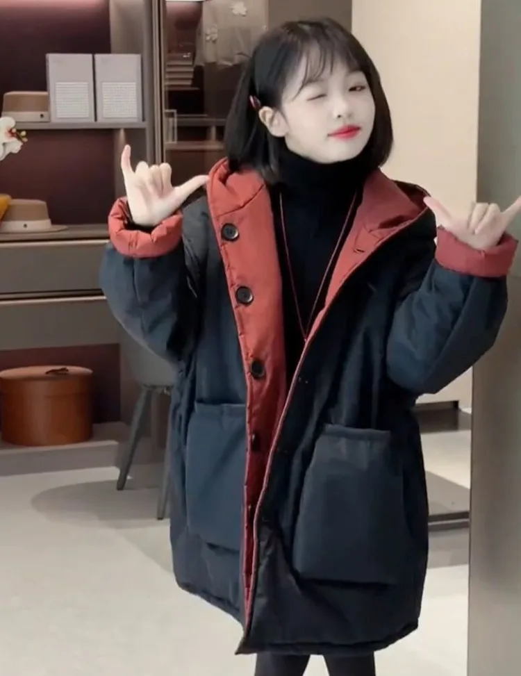 Two-in-One Reversible Winter Coat for Girls 2025 New Arrival Plus-Size Thermal Insulated Kids Jacket Thickened Middle-Length